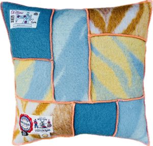 Uniek vintage kussen, handgemaakt van retro wollen dekens.