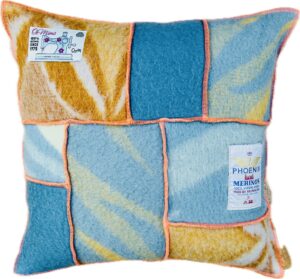 De handgemaakte wollen woonkussens zijn stevig gevuld met schuimrubber vlokken en voorzien van een kek OhMama label.